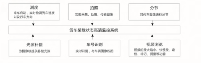 系統(tǒng)采用高清彩色線陣像機(jī),實(shí)時(shí)采集運(yùn)行中列車及貨物的裝載狀態(tài),生成高清晰彩色視頻圖像并 按車廂進(jìn)行準(zhǔn)確分割,實(shí)現(xiàn)預(yù)檢作業(yè)的快速發(fā)現(xiàn)、快速定位、快速標(biāo)記、及時(shí)報(bào)警等功能。通過優(yōu)化的 壓縮算法,使網(wǎng)絡(luò)傳輸數(shù)據(jù)流量小、視頻質(zhì)量高,符合貨檢安全監(jiān)控三級(jí)聯(lián)網(wǎng)系統(tǒng)的應(yīng)用條件,可接入 貨檢集中監(jiān)控平臺(tái)。