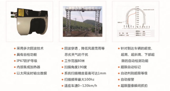 鐵路貨車超限檢測系統(tǒng)是保障鐵路貨運運輸安全的重要設(shè)備。系統(tǒng)通過實時檢測列車裝載狀態(tài),依 據(jù)鐵路超限超重貨物運輸規(guī)則》自動判斷貨物是否超限,以及超限的尺寸、超限等級、部位等。當檢測 到超限車輛時,通過報警提示用戶注意,并提供超限部位圖像信息,以便人工查驗。